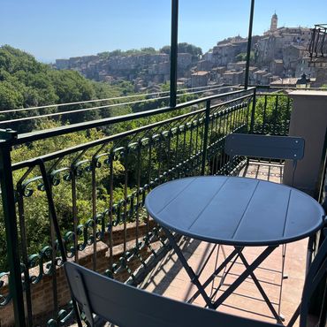 The home is located within the historic walls and only a few steps away from the town square, Ruspoli Castle, and Connutti (underground tunnels, chambers, and tombs).
